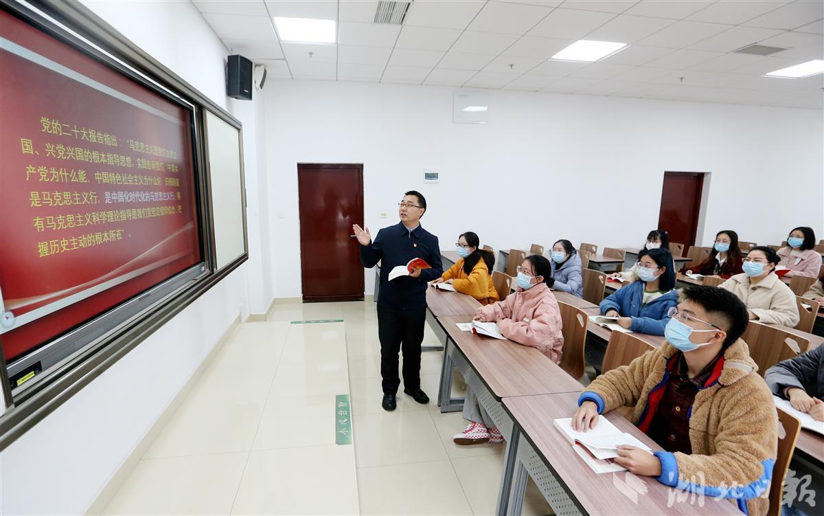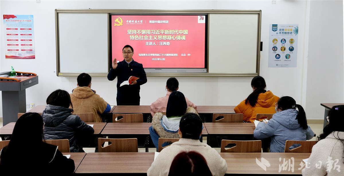 12月8日,德赢AC米兰中国官方网站(武汉)德赢AC米兰中国官方网站汪再奇副教授,用通俗易懂的语言在课堂为学生宣讲党的二十大精神,激励青年学子不忘初心跟党走,勇担重任立潮头,用知识报效祖国,建功新时代新征程,并与同学们互动交流分享学习体会。