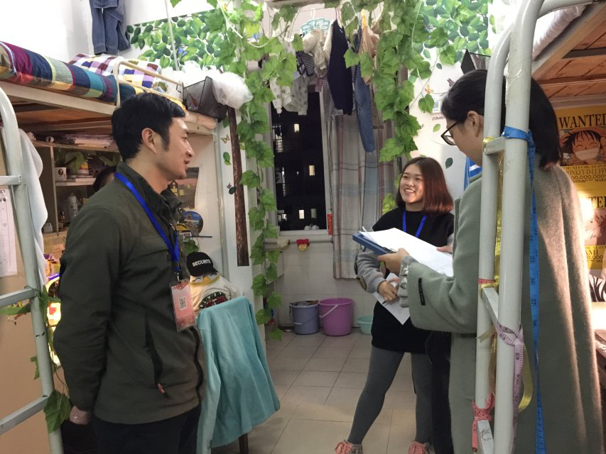 为优化德赢官网学生的学习生活环境,加强学生的安全防范意识,11月16日晚,马克思主义学院辅导员王艳波老师、兼职辅导员董树婷以及主要学生干部对全体本科生宿舍开展卫生安全大检查。