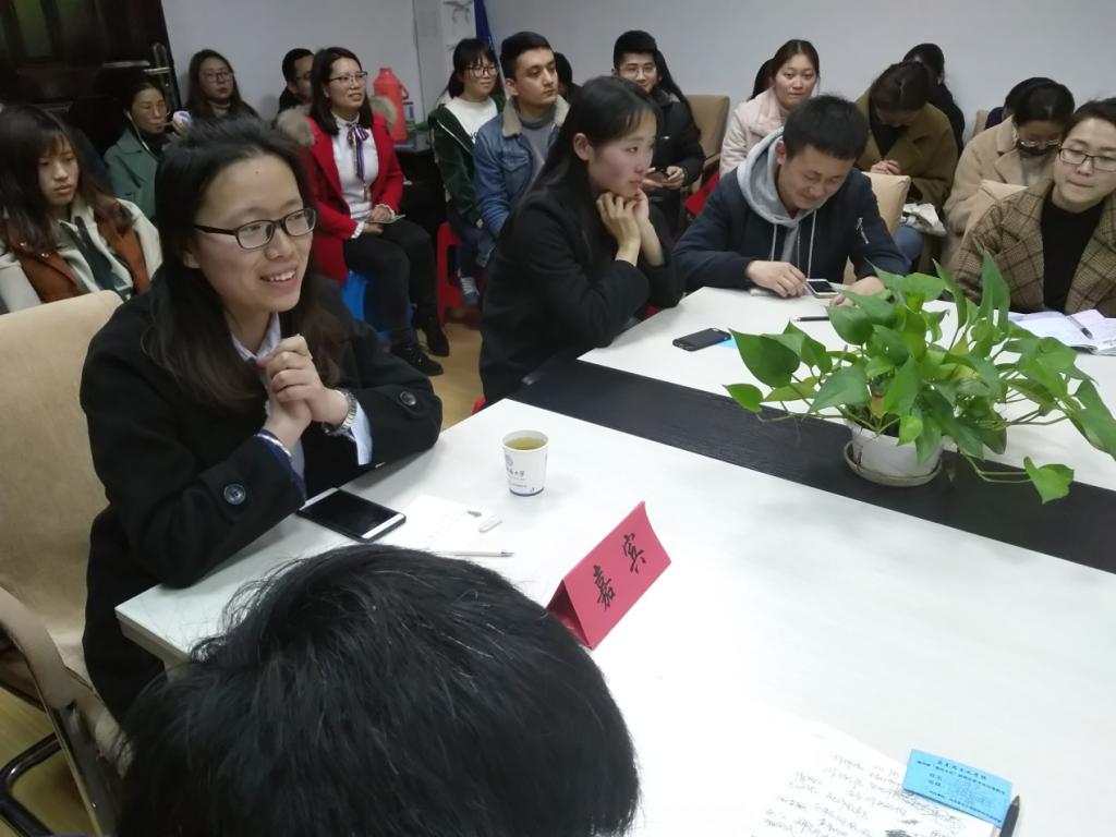 崔龙燕同学以“不忘初心,奋力前行”为主题,就如何把握和运用好学习时间、如何进行科研写作、如何进行心理调适以及大学生担当的家庭、学术和社会责任等方面进行了详细的阐述。最后,她引用习近平总书记新年贺词中的一句话“幸福是奋斗出来的”鼓励同学们去努力拼搏,有所收获,在场同学都深受启发。关于同学们提出的论文选题以及写作技巧等问题,崔龙燕同学也进行了详细的解答。