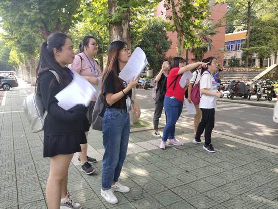 你知道从地大去各大高校怎么不浪费时间吗?爱国新青年团队的“导游”告诉你:要认真。每一次出发之前,“导游”都会认真规划路线,计算好行程以及在各学校完成任务的时间、休息的时间,每次出门跟在不戴帽子,不拿旗子的“导游”身后感觉自己像是拿着问卷带着工作证的旅行团。