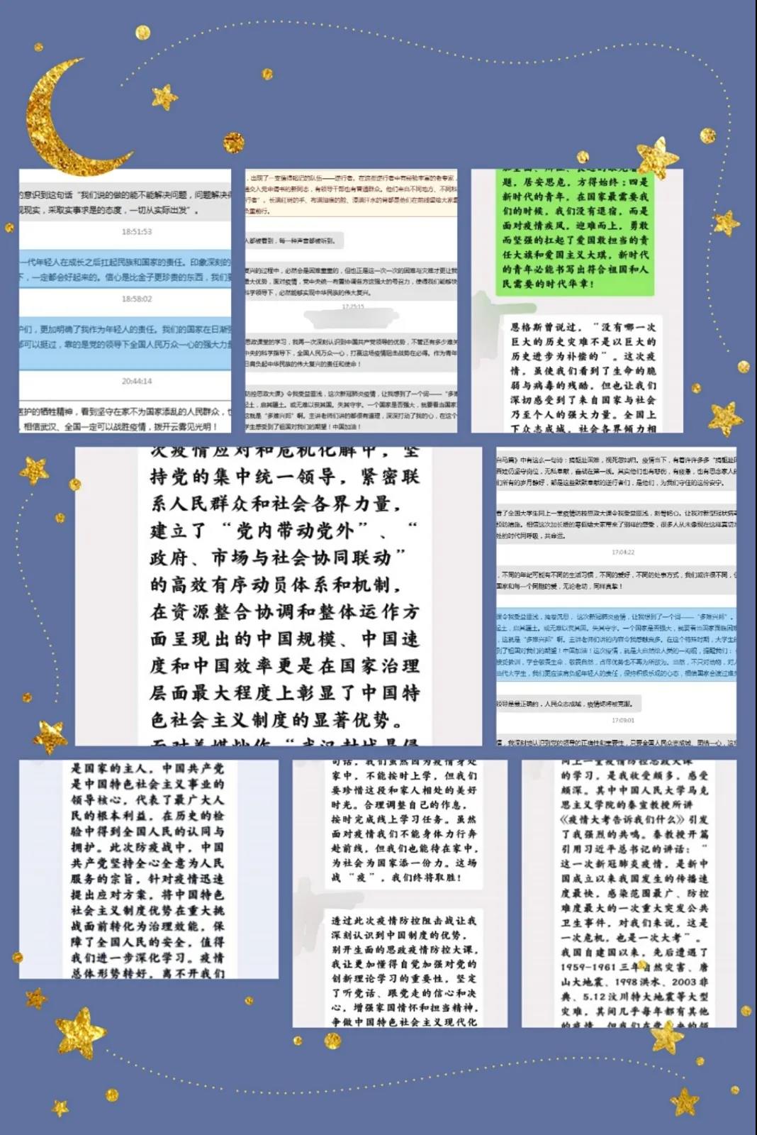 在习近平新时代中国特色社会主义思想的指导下,为将高校思想政治理论课教学优势转化为支持防疫斗争的强大力量,引导广大学生增强“四个意识”、坚定“四个自信”、做到“两个维护”,坚定在以习近平同志为核心的党中央坚强领导下打赢这场疫情防控人民战争,深刻认识中国抗疫彰显的中国共产党领导和中国特色社会主义制度的显著优势,并响应《教育部社科司关于组织“全国大学生同上一堂疫情防控思政大课”的通知》,德赢官网组织学生在线收看了相关直播。观看了直播后,同学们针对此次思政大课,有热烈反响。