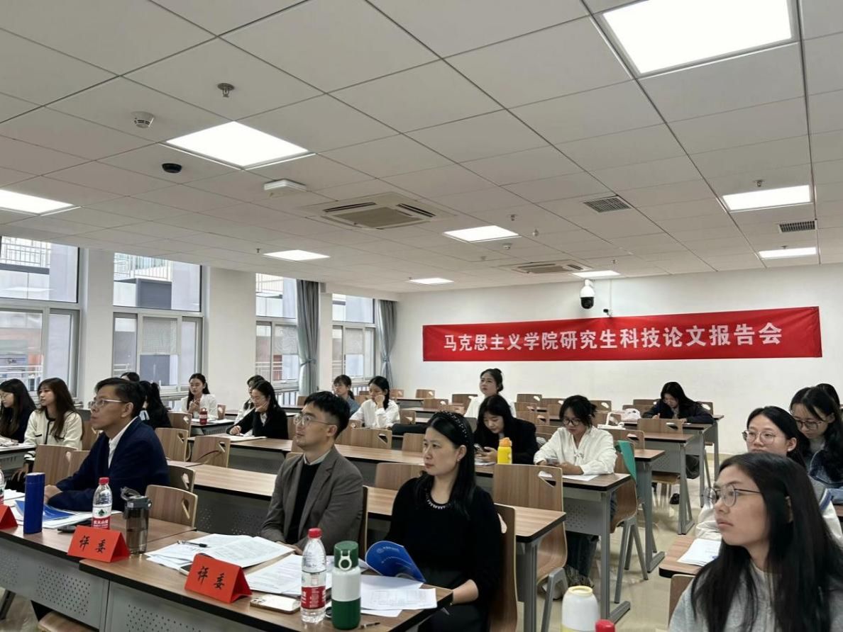本次科报会参会的论文选题包含了马克思主义基本原理、马克思主义中国化研究、思想政治教育、中国近现代史基本问题研究等方向。答辩过程中,研究生们聚焦当前热点,立足所学专业的前沿性问题,如“算法”技术、“躺平”现象、生态问题等向在场师生展示自己的学术成果,吸引了老师和同学们的热烈关注。汇报结束后,评委老师针对每位同学论文及答辩中存在的问题,提出针对性建议,在老师的悉心指导下,大家受益匪浅。