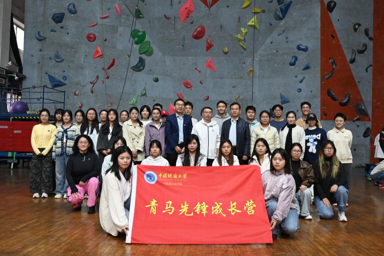 上午10:00,体能强化培训在西区攀岩馆进行。体育学院党委副书记朱军首先向同学们介绍了地大攀岩运动的历史与荣誉,并安排了8名具备专业知识与技能的体育学院学生带领学员们开展了一场妙趣横生的团建游戏。攀岩体验环节,学员们认真学习专业老师的讲解和指导,严格按照技术要领开展活动。大家彼此支持、互相打气,展现出高度的协作意识和团队精神。