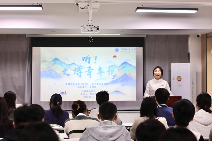 此次宣讲人郑雨欣的宣讲主题为《听!文博青年说》,讲述了文博青年在建设社会主义文化强国,推动文化现代化进程中所做的贡献,同时依托德赢官网“逸夫博物馆+秭归实习基地”大思政课实践教学平台以及“红绿蓝”大中小学思政课一体化共同体建设项目作为案例补充,呼应着习近平总书记在湖北探访云梦博物馆的时政热点。