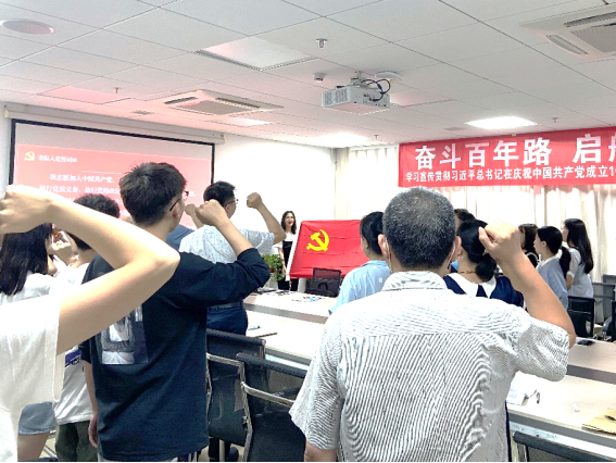 (通讯员:王舒晨、张东凯、李蔚然)奋斗百年路,启航新征程。在庆祝中国共产党成立100周年这个光荣的日子,德育教研部党支部与2020级马克思主义理论硕士生党支部于2021年7月1日下午14:30在东区教学综合楼B1013开展“学党史·铸初心”党史学习交流会暨结对领航支部联合主题党日活动。此次活动共历时三小时,由支部书记李蔚然老师和张东凯同学共同主持,师生党支部全体同志参与了本次交流活动,院长阮一帆为在场党员开展党史学习教育专题辅导。
