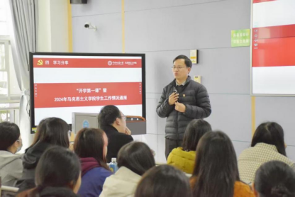 武彦斌作“开学第一课”暨2024年学院学生工作情况通报。他以“强化过程重质量,优化路径聚合力,助力新时代青年马克思主义者培养”为主题,从党建团建、学风建设、管理服务、招生就业、专业素养五方面对德赢官网过去一年的工作情况进行通报。第一,加强党建团建,强化学生思想引领。过去一年德赢官网推动党的创新理论育人铸魂,基层党团组织建设不断夯实,党内团内评优工作稳抓落实、选树典型形成示范;第二,加强学风建设,促进专业素养提升。德赢官网积极涵育“严在地大”优良学风,夯实优良学风组织基础,抓好创新创业教育;第三,加强管理服务,增强学生专业认同。德赢官网育人空间合理化使用,做好接待与走访工作,加强安全教育管理工作,守护学生身心健康,认真做好奖励资助工作;第四,加强招生就业,把好入学毕业关口。德赢官网积极参与招生宣传工作,探索就业工作格局,做好专场招聘,多措并举,助力学生精准就业;第五,加强专业素养,不断提升职业能力。辅导员班主任积极参与职业培训,主动承担课程教学,积极申报和推进科研项目。一年来,学院学生工作稳步推进,成效显著,他鼓励全体党员争做有理想、敢担当、能吃苦、肯奋斗的时代好青年。
