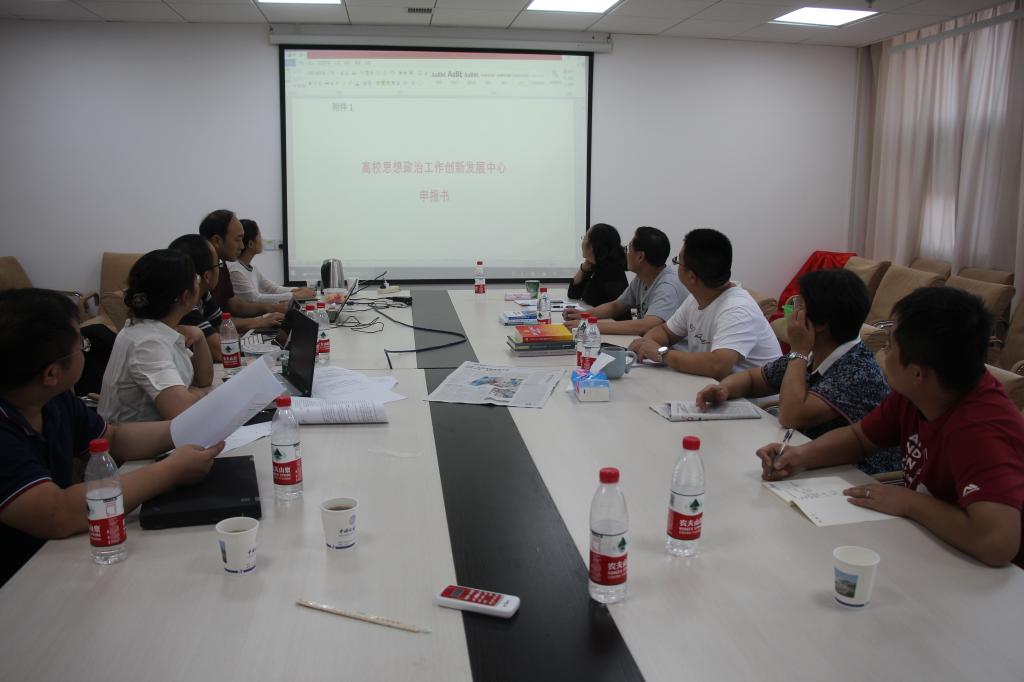 刘世勇书记指出一定要严格按照思政司下发的有关通知和项目管理办法的要求填写项目申报书。与会人员围绕项目申报书的四大板块进行了反复的斟酌和交流,确定了各大版块的基本填写思路和填写方向。其中着重探讨了“重大选题”这一板块,从实践育人和心理育人两大方面确定了四个主要的研究选题:习近平实践观与高校实践育人研究、艰苦行业高校实践育人模式研究、“健康中国”战略与高校心理育人研究、同向同行的大学生心理危机干预体系研究。