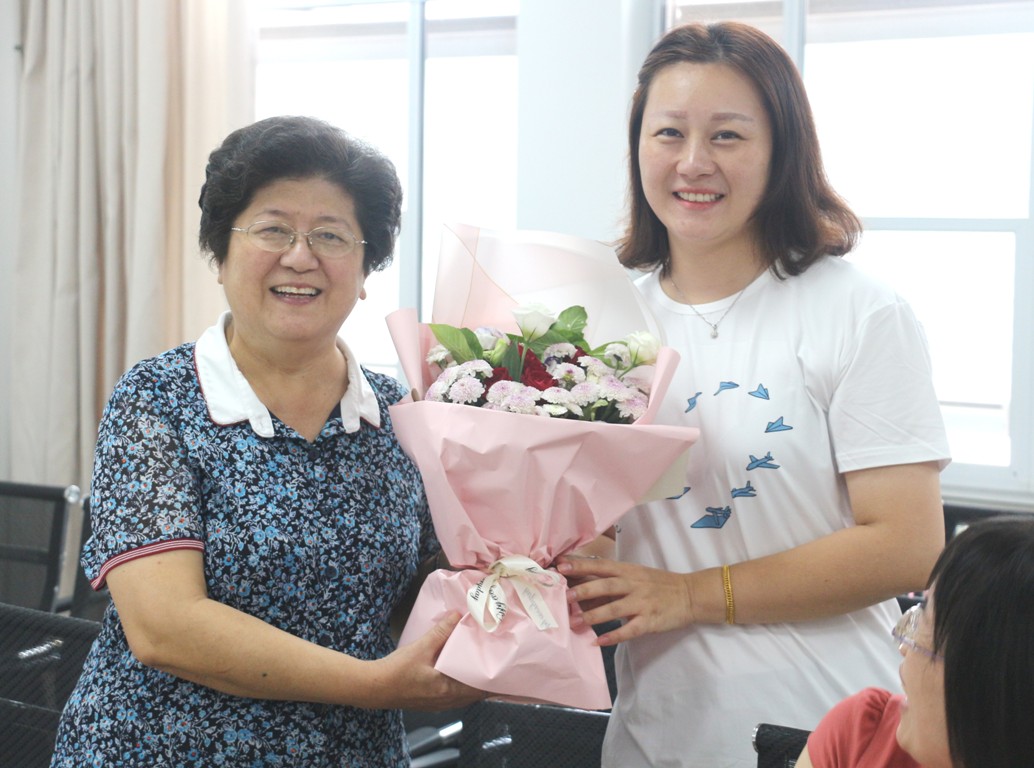 最后,同学们分别为老师献上鲜花,以感谢老师们的培养之情。