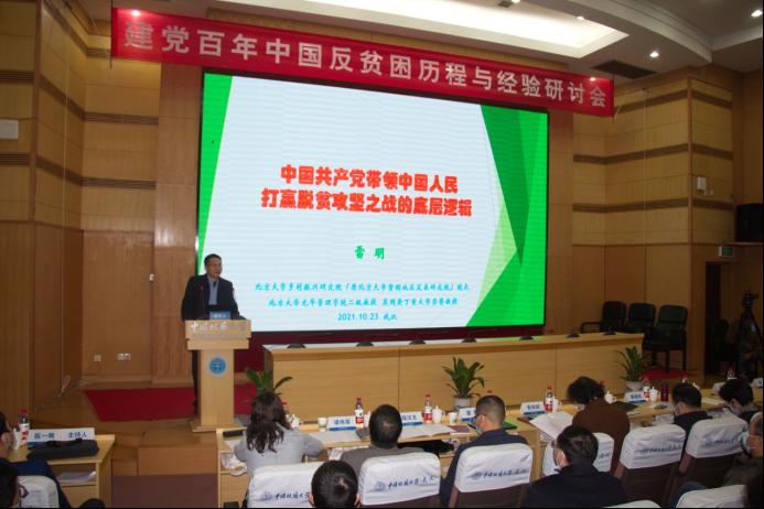 10月23日,建党百年中国反贫困历程与经验研讨会在南望山校区迎宾楼举行。国家乡村振兴局中国扶贫发展中心主任黄承伟,湖北省社会科学联合会党组书记、常务副主席喻立平、副主席安向荣,华中师范大学资深教授徐勇,校党委书记黄晓玫,公共管理学院院长胡守庚,科学技术发展研究院副院长郭海湘,德赢AC米兰中国官方网站院长阮一帆,来自北京大学、中国人民大学、北京师范大学、中国农业大学、西安交通大学、华中师范大学、华中农业大学和中南财经政法大学等的专家学者,《江汉论坛》、新华社、《光明日报》、《中国社会科学报》等媒体以及德赢官网德赢AC米兰中国官方网站师生代表150余人参加研讨会。