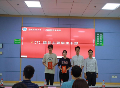 聘任主要学生干部。武彦斌宣读学院党委关于聘任学生干部的文件,并由院党委书记汪再奇为2023级学生会、研究生会主席团及党建办主任团学生骨干代表颁发聘书。