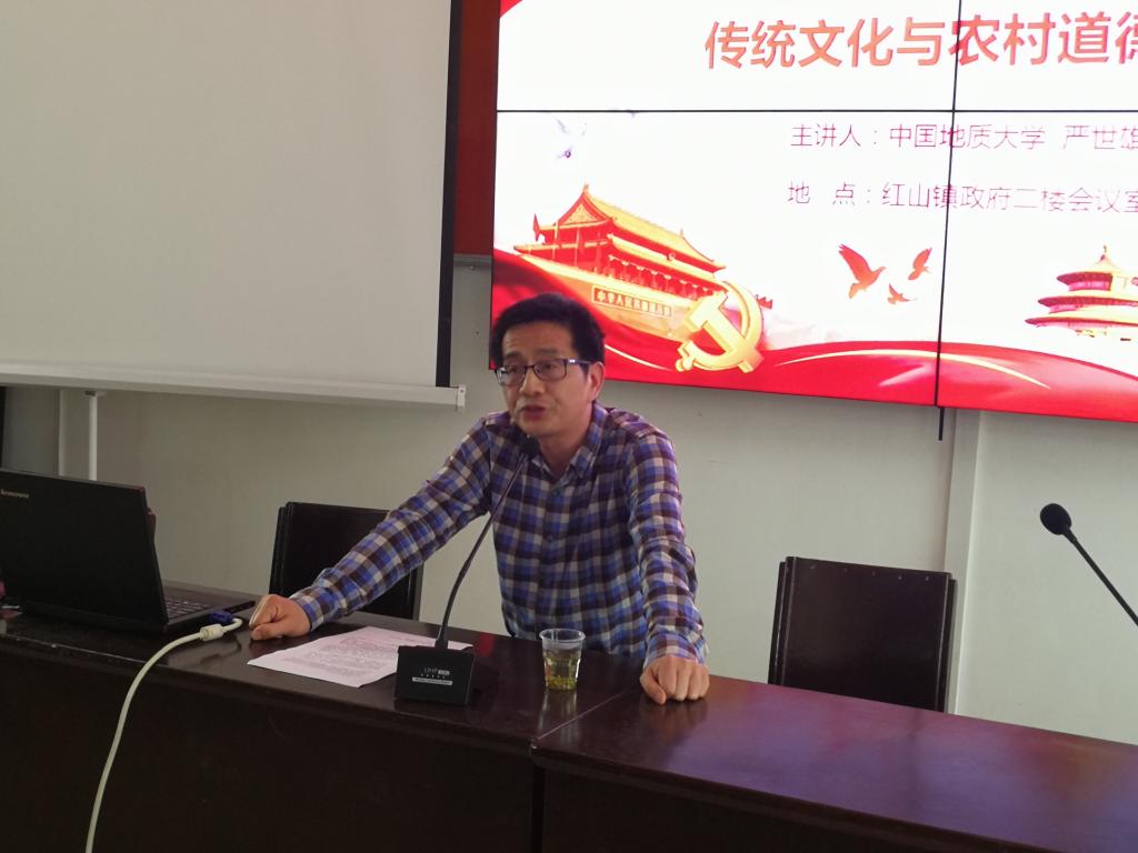 5月24日,德赢官网侯志军书记、陈军副院长一行4人,赴德赢官网“理论热点面对面”示范点建设对口单位——湖北省英山县红山镇开展宣讲。红山镇全体党员干部及入党积极分子到会学习。在该镇入党积极分子培训班开班仪式上,德赢官网思想政治教育系主任严世雄副教授做了题为“传统文化与农村道德建设”的专题报告。严世雄老师在梳理总结习近平总书记关于传统文化主要内容及时代重要性系列论述基础上,结合当前我国乡村振兴战略的现实需求和诸多挑战,深入阐释了农村道德建设与传承孝道文化的系列理论与实践问题。为村镇基层干部如何在传播孝道文化中勇担责任、履行义务、弘扬社会正能量等思想理论问题进行了释疑解惑,引起与会党员干部和入党积极分子的热烈反响。