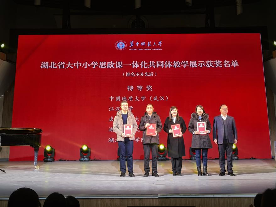 1月3日下午,湖北省大中小学思政课一体化共同体优秀作品表彰大会暨“歌声中的党史”特色思政课展演活动在华中师范大学举行。以德赢官网为牵头单位制作的“红绿蓝”大中小学思政课一体化共同体“总体国家安全观”教学展示成果荣获湖北省大中小学思政课一体化共同体教学展示活动特等奖。德赢官网副院长孙文沛,学院教师李蔚然、张洁参加颁奖会。