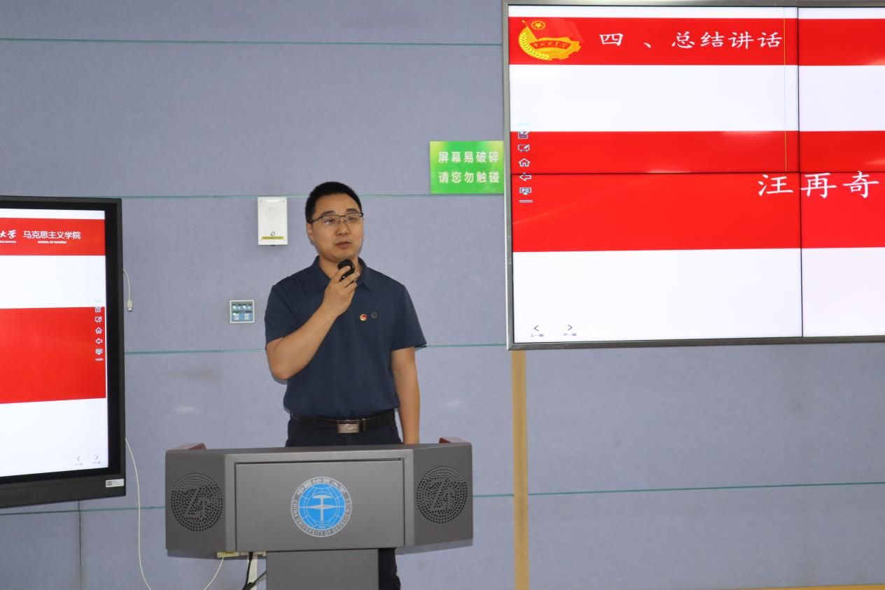 汪再奇作总结讲话。他向全院青年致以衷心的节日祝福;并希望广大青年团员能够认真学习习近平总书记关于青年工作以及共青团工作的重要论述,深学细悟,真学实干,争做有理想、敢担当、能吃苦、肯奋斗的新时代青年,不断向榜样学习,不断提升自我,争取早日加入到五四表彰的队伍之中。