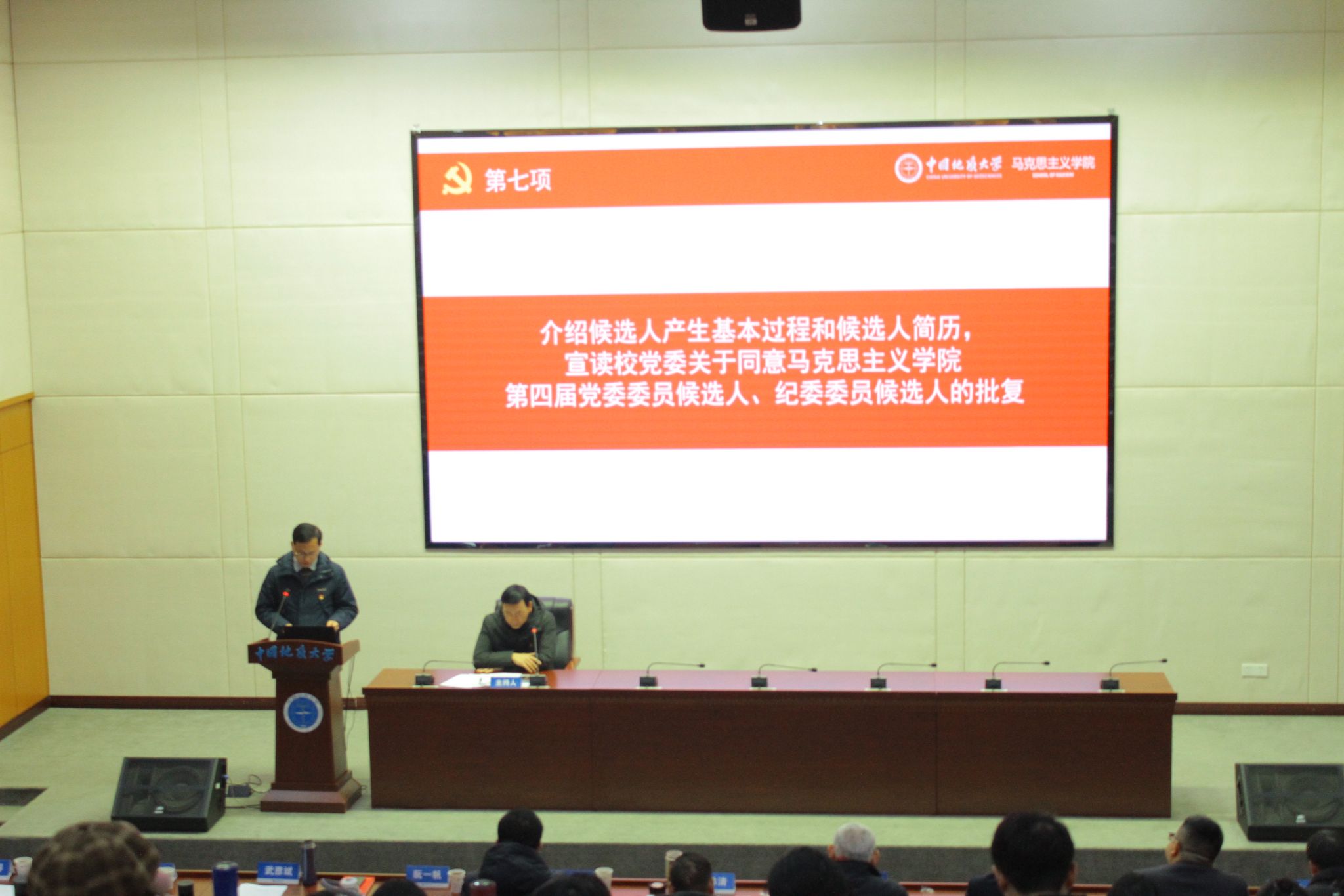 党委组织部副部长张建华宣读了《学校党委关于中共德赢AC米兰中国官方网站(武汉)德赢AC米兰中国官方网站委员会召开第四次换届选举大会的批复》。
