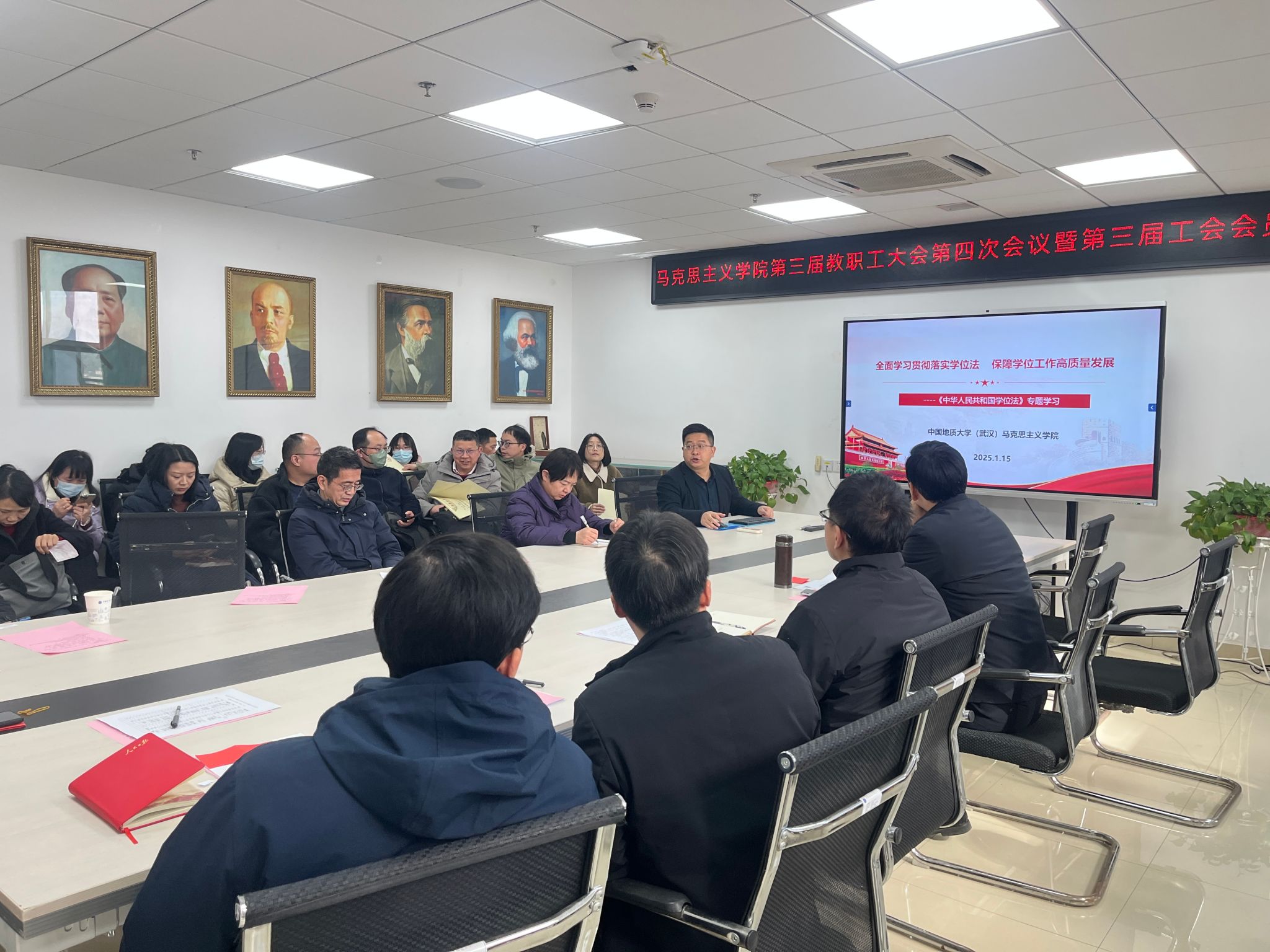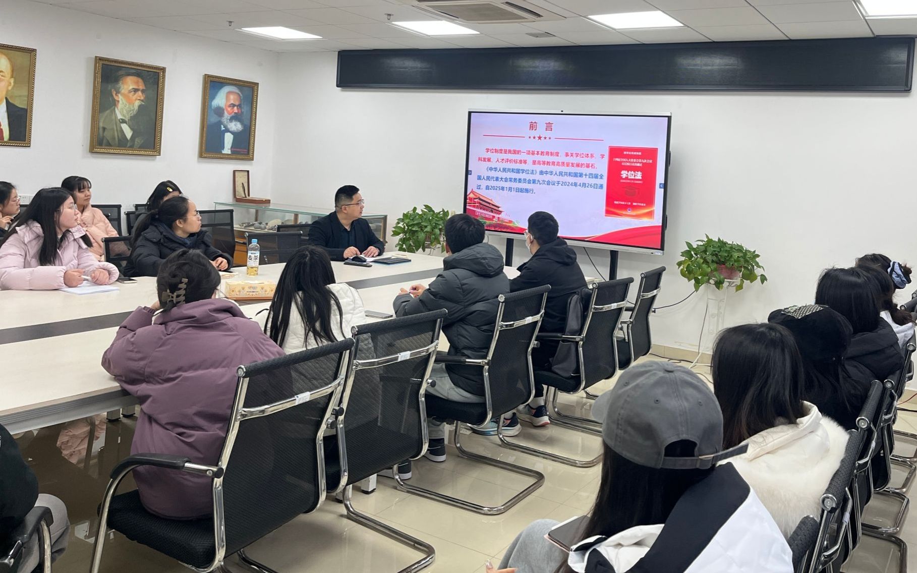 为深入贯彻落实《中华人民共和国学位法》(以下简称《学位法》)暨导师专题培训的工作要求,切实提升学生培养质量,规范学位授予工作,德赢官网于2025年1月6日-15日分组开展了《学位法》专题学习活动。本次学习活动采用线上线下结合的形式进行。学院领导班子成员、30余名研究生导师和全体研究生参加了专题学习,副院长陈军主持和领学。