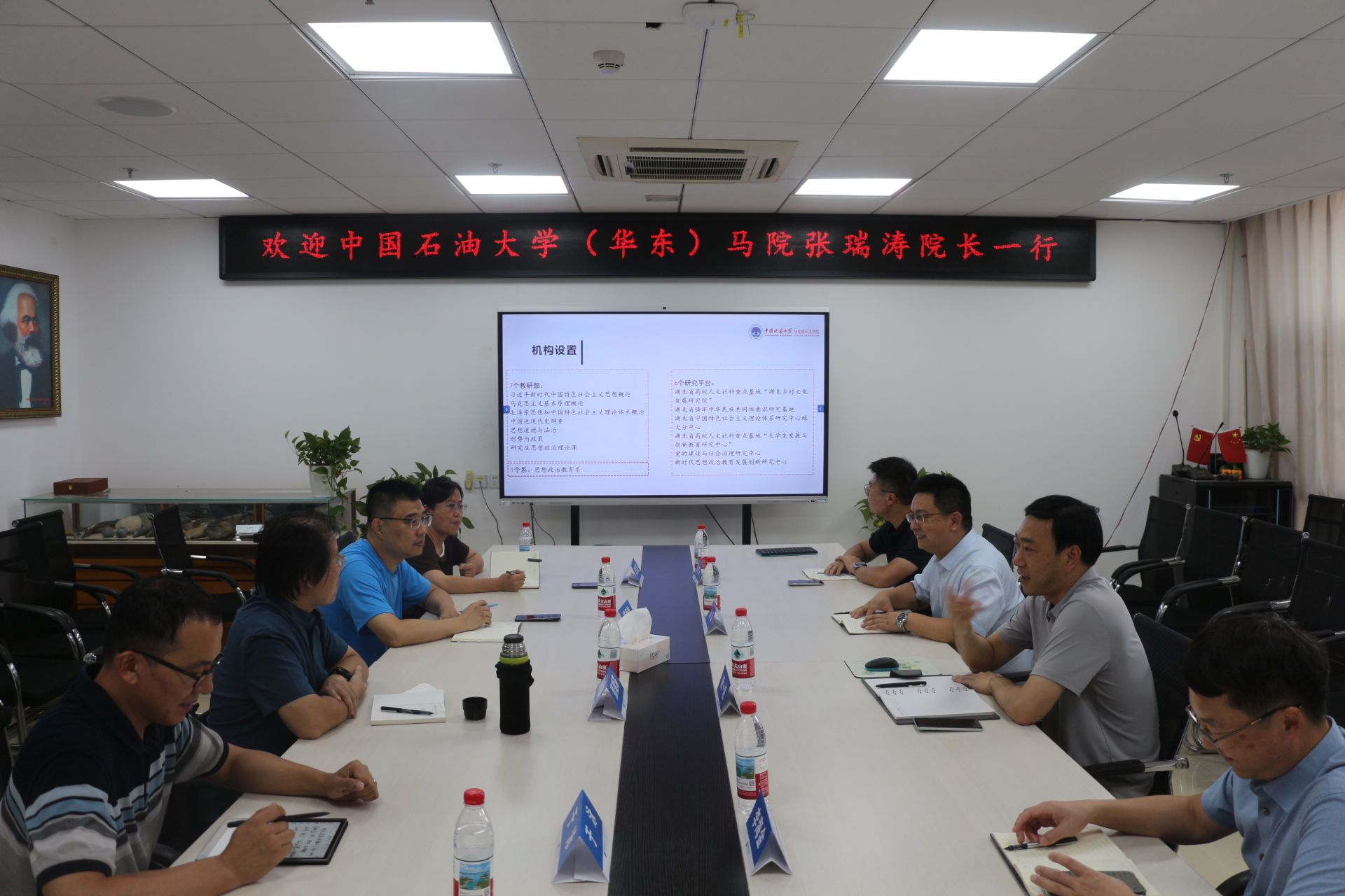 阮一帆院长对张瑞涛院长一行来校表示欢迎,重点介绍了德赢官网的发展历程、机构设置、师资队伍、思政课建设、学院发展思路、省级重点马院建设和人才培养等特色经验。石油大学张瑞涛院长一行也分别介绍了马院的发展思路以及学科特色上的探索经验。